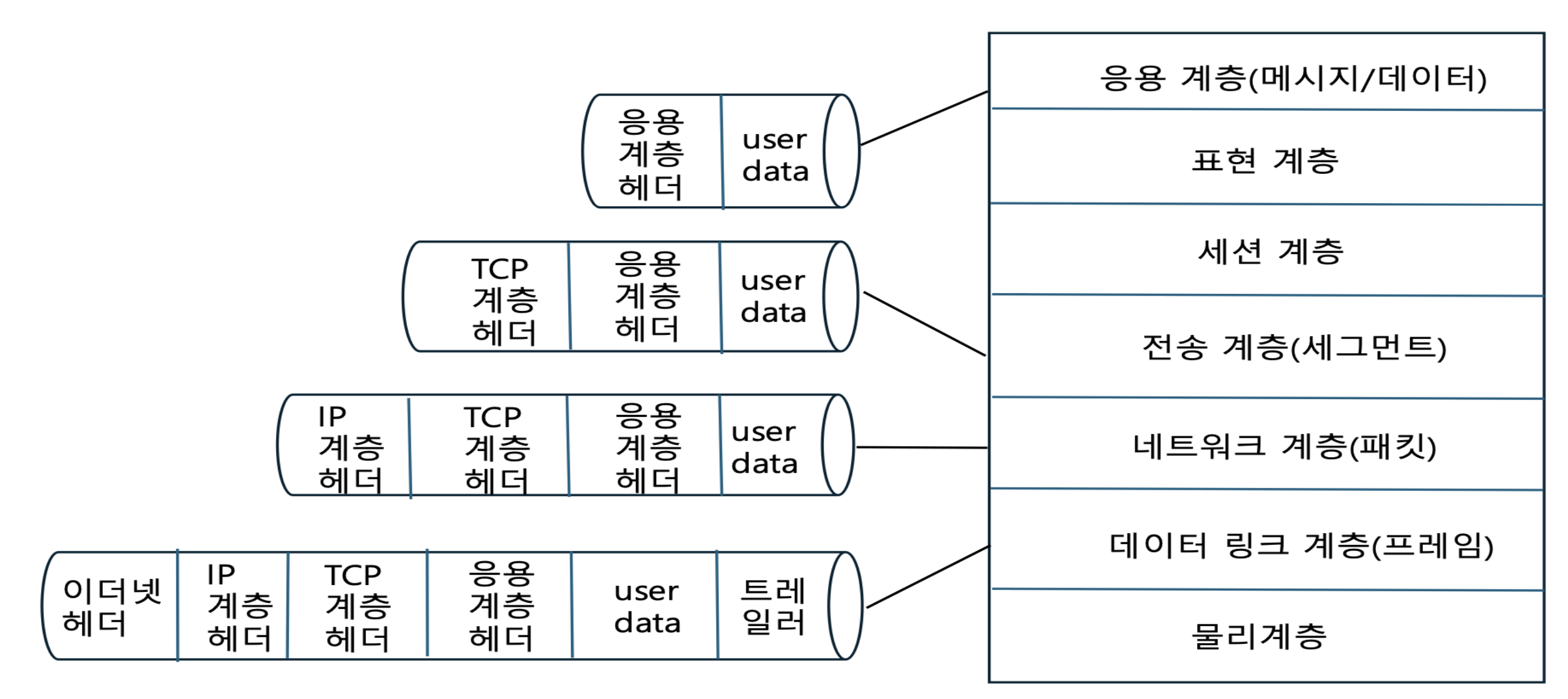 - 단계가 많고 구조가 복잡해서 간단하고 인터넷 서비스에 적합한 4계층 모델이 개발됐다.